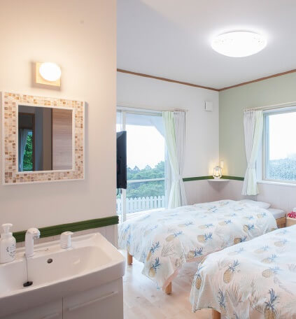 洋室はすべてツインとなっており、海側のお部屋からはそのままテラスへ出ることができます。